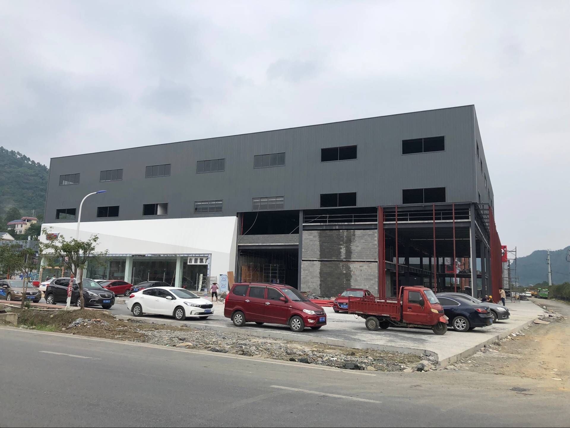 近日,公司領(lǐng)導(dǎo)來(lái)到吉首凱迪拉克4S店的施工現(xiàn)場(chǎng),工地鋼結(jié)構(gòu)施工已經(jīng)完成,只有裝修還在緊張進(jìn)行。本項(xiàng)目從進(jìn)場(chǎng)施工,到鋼結(jié)構(gòu)完成,大概兩個(gè)月左右,建筑面積約10000平方米,用鋼量近600T。