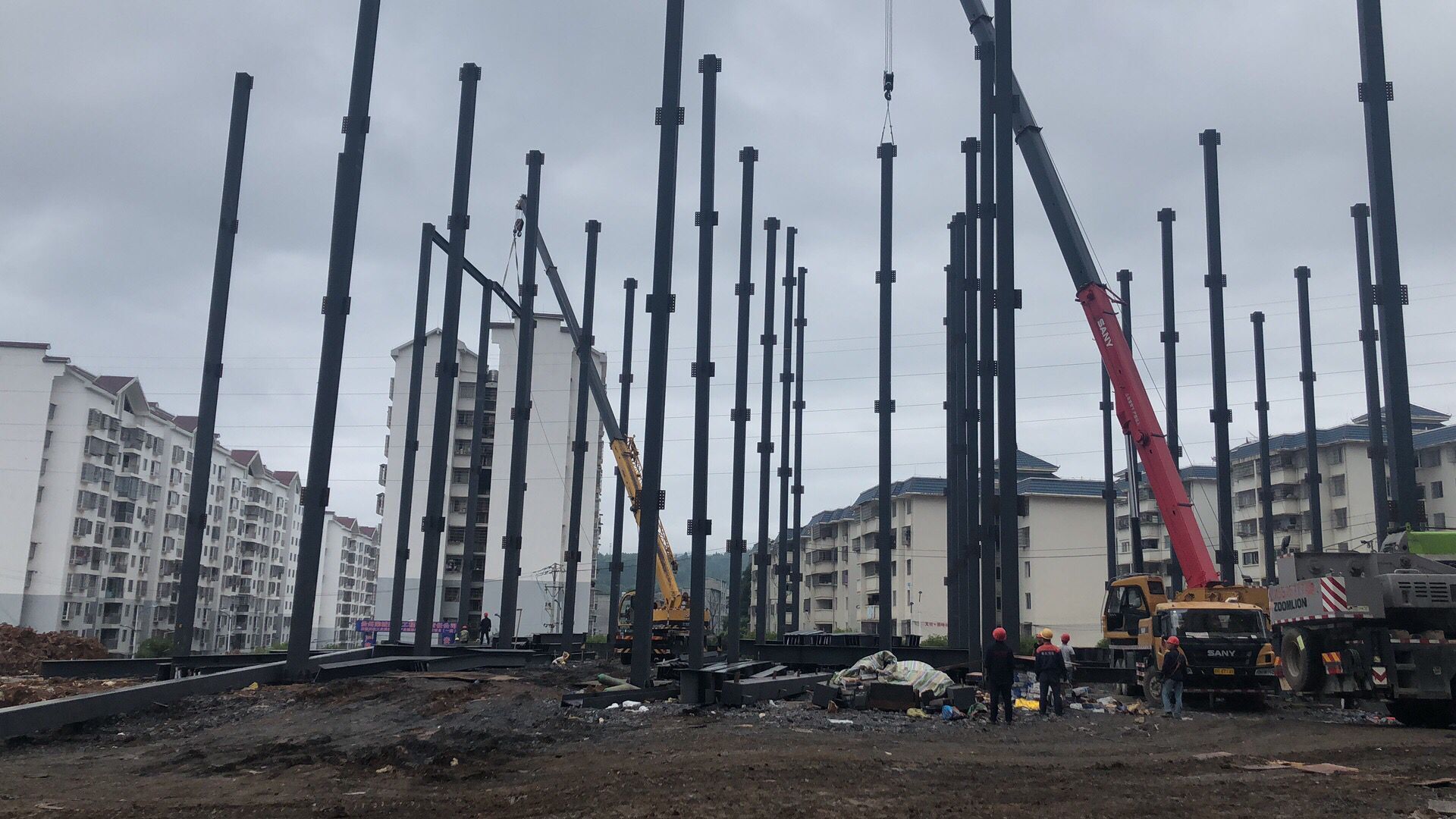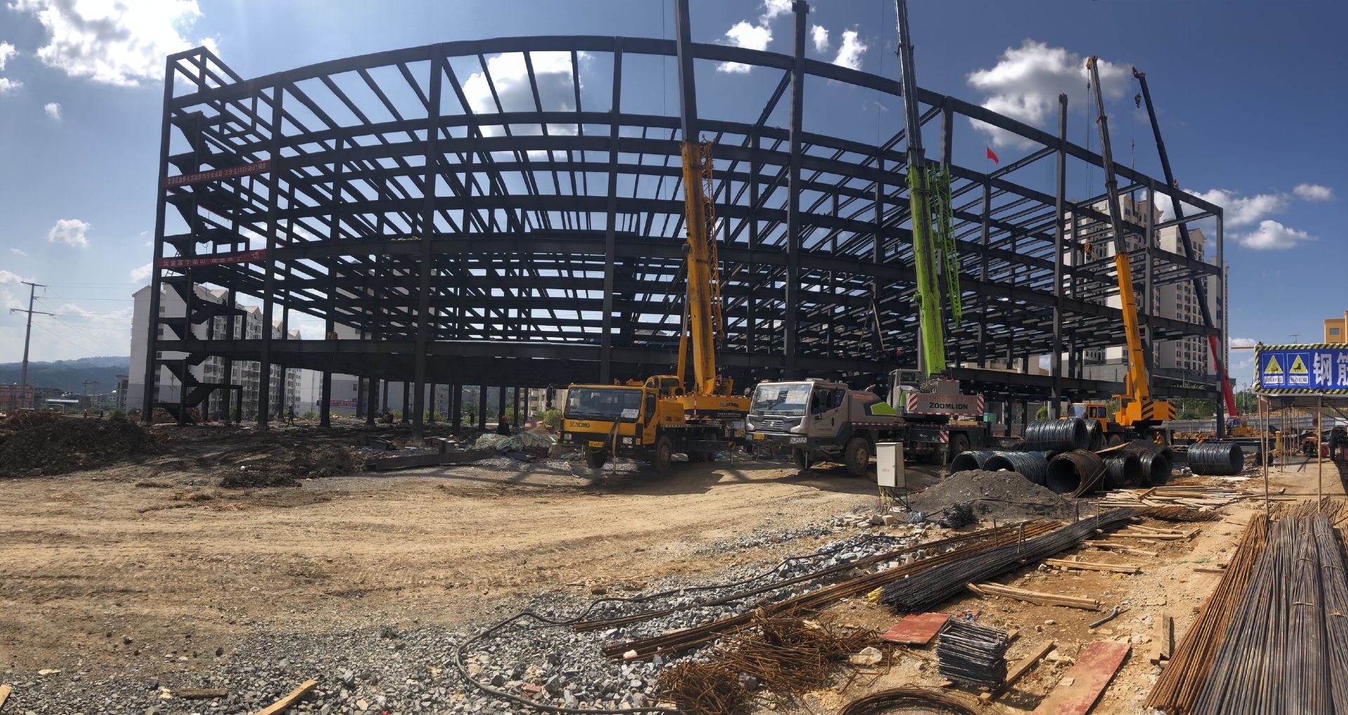 2019年8月28日,貴州省重點(diǎn)項(xiàng)目——天柱縣扶貧制衣車間1、2號(hào)樓12000平方米全鋼框架結(jié)構(gòu)開始吊裝,到今天為止,已經(jīng)基本完成鋼梁、鋼柱的安裝,馬上將進(jìn)行加焊、鋪設(shè)樓承板的工作,預(yù)計(jì)本月底完成所有主體工作,交付甲方進(jìn)行裝修。在施工過程中,黔東南州委領(lǐng)導(dǎo)、天柱縣委領(lǐng)導(dǎo)非常重視此項(xiàng)目的施工進(jìn)度和質(zhì)量,先后幾次來到工地進(jìn)行檢查。大家對(duì)我公司此次的加工制作質(zhì)量、現(xiàn)場施工進(jìn)度都非常滿意!