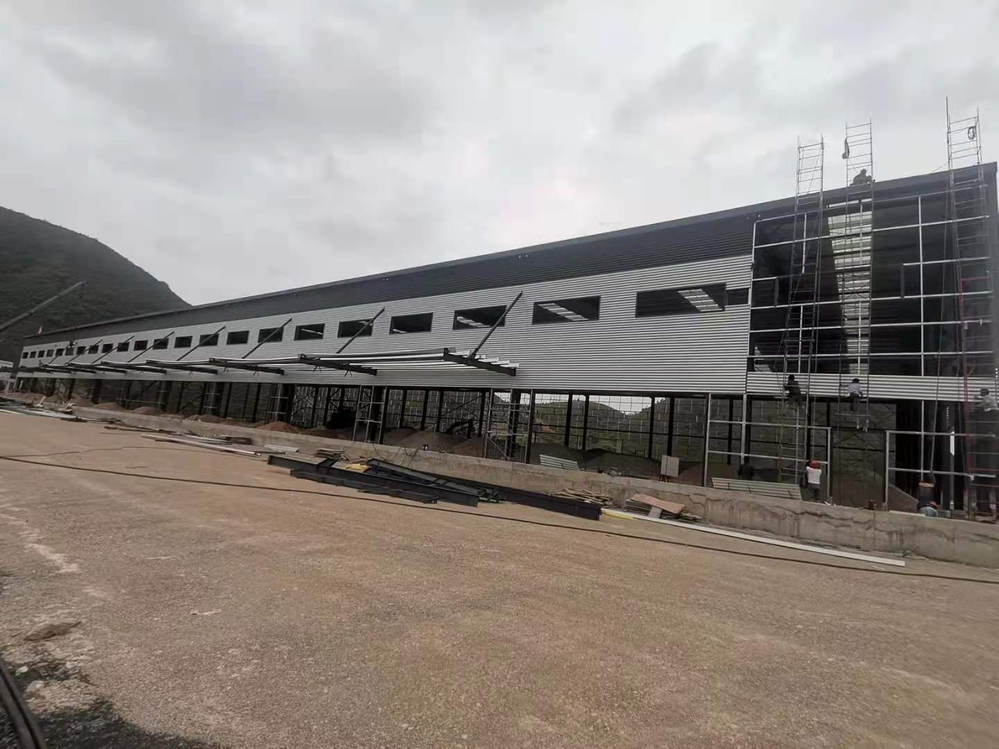 該項目位于貴州省境內(nèi),建筑面積11000㎡,跨度30m,柱間距12m,檐口標(biāo)高12m,為單層門式鋼架結(jié)構(gòu)?,F(xiàn)已完成主鋼架及屋面工程、1/2墻面工程的施工任務(wù),預(yù)計在8月底完工。