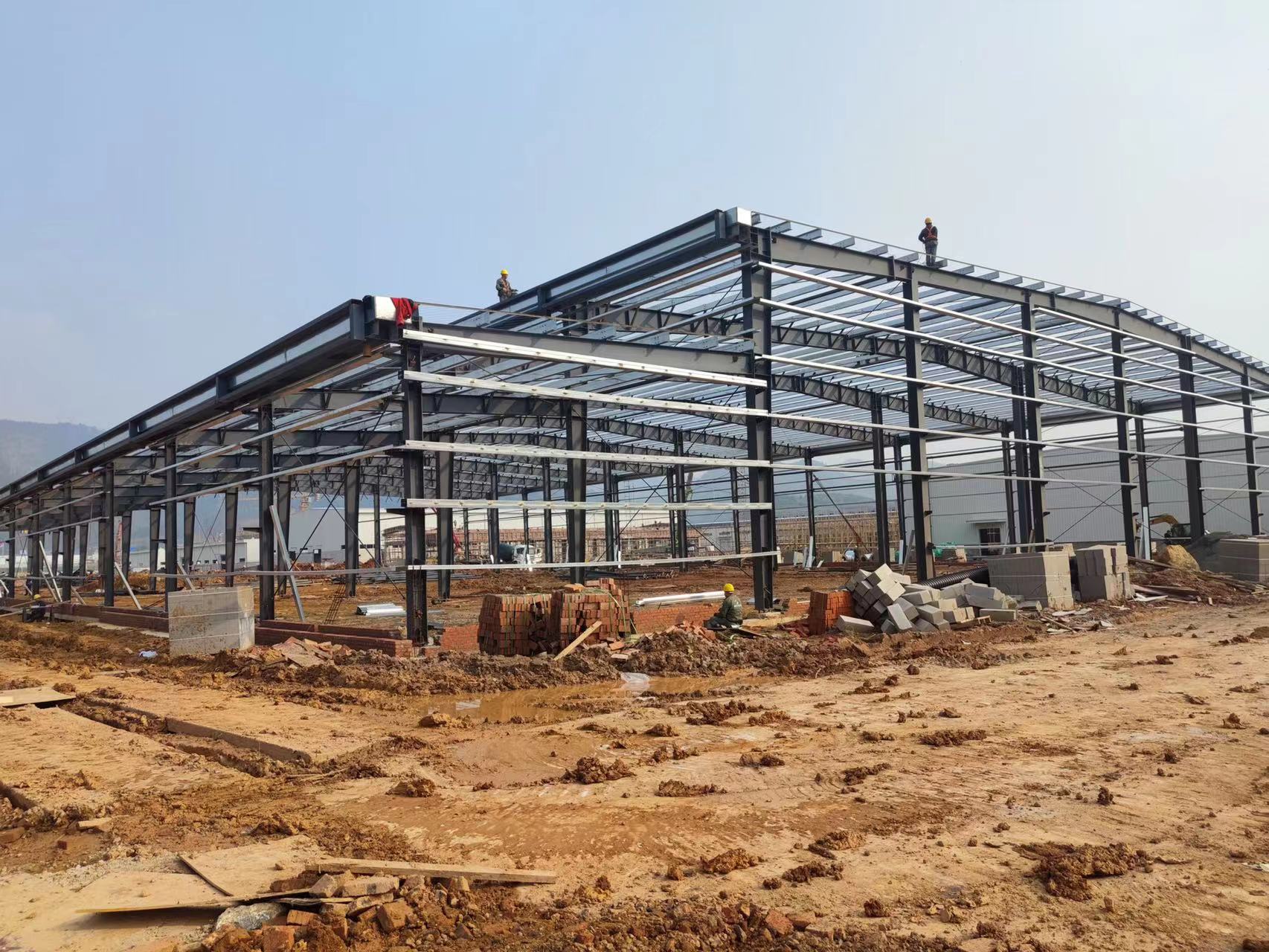 2#線主體鋼構(gòu)車間正在進(jìn)行分段施工。2#車間全長340余米,建筑面積為20000㎡。