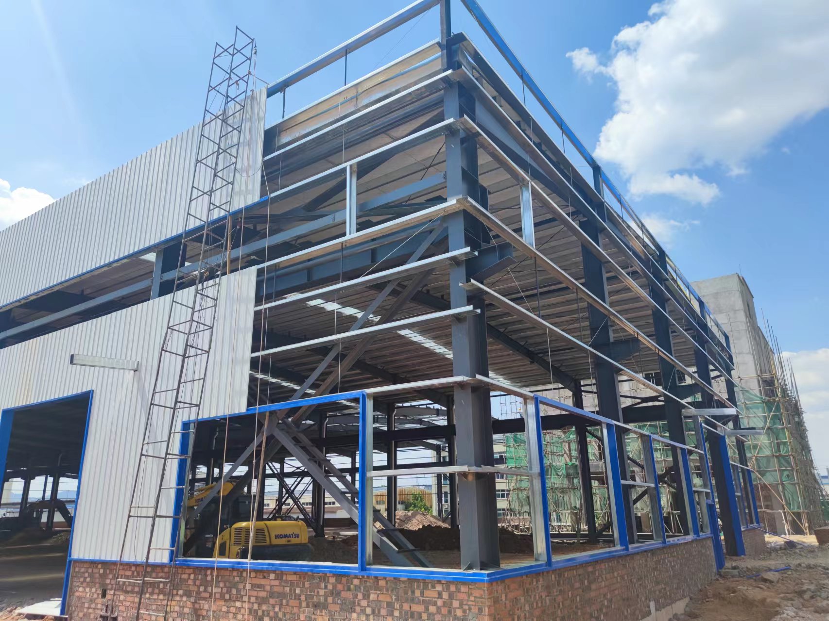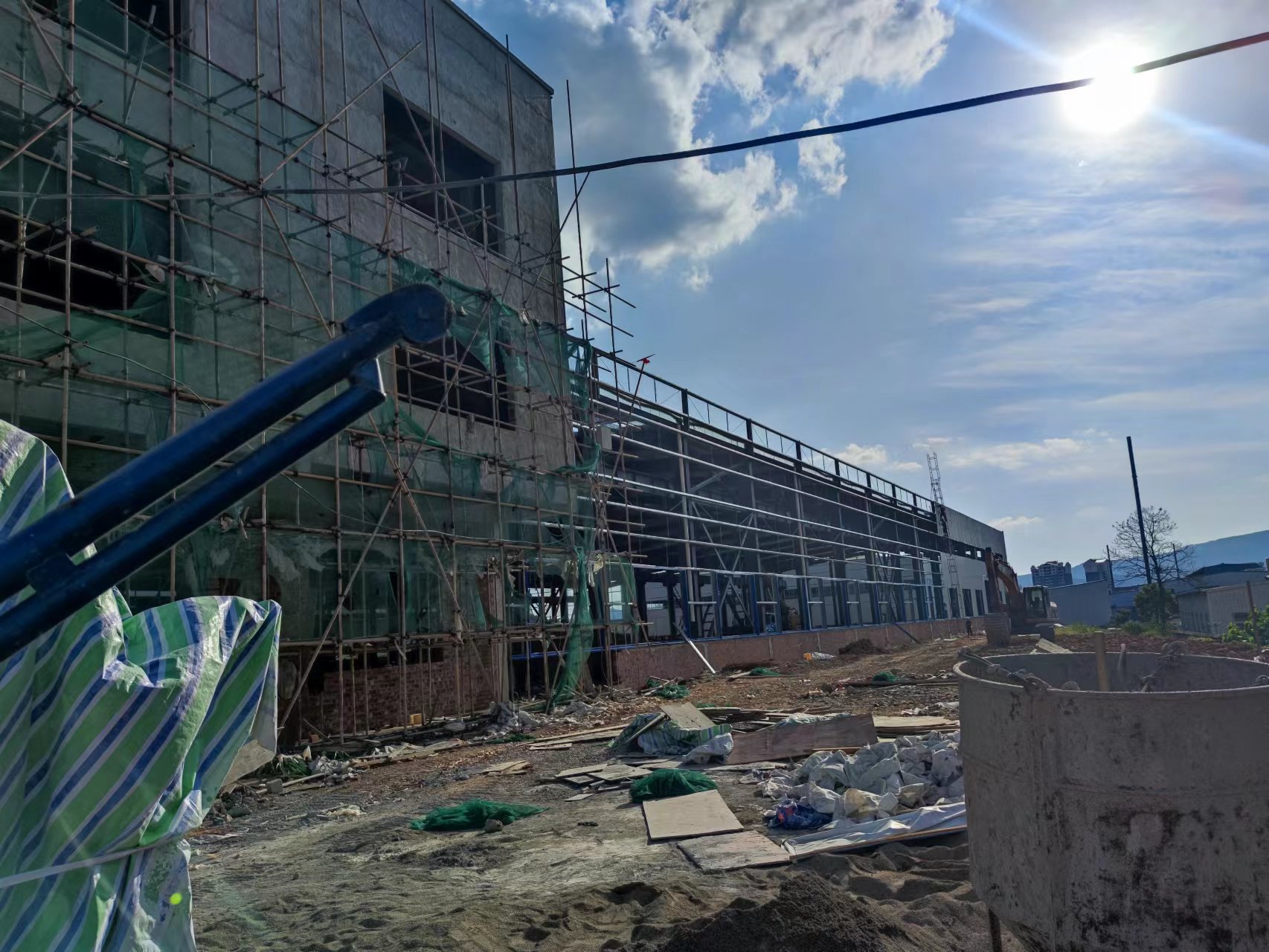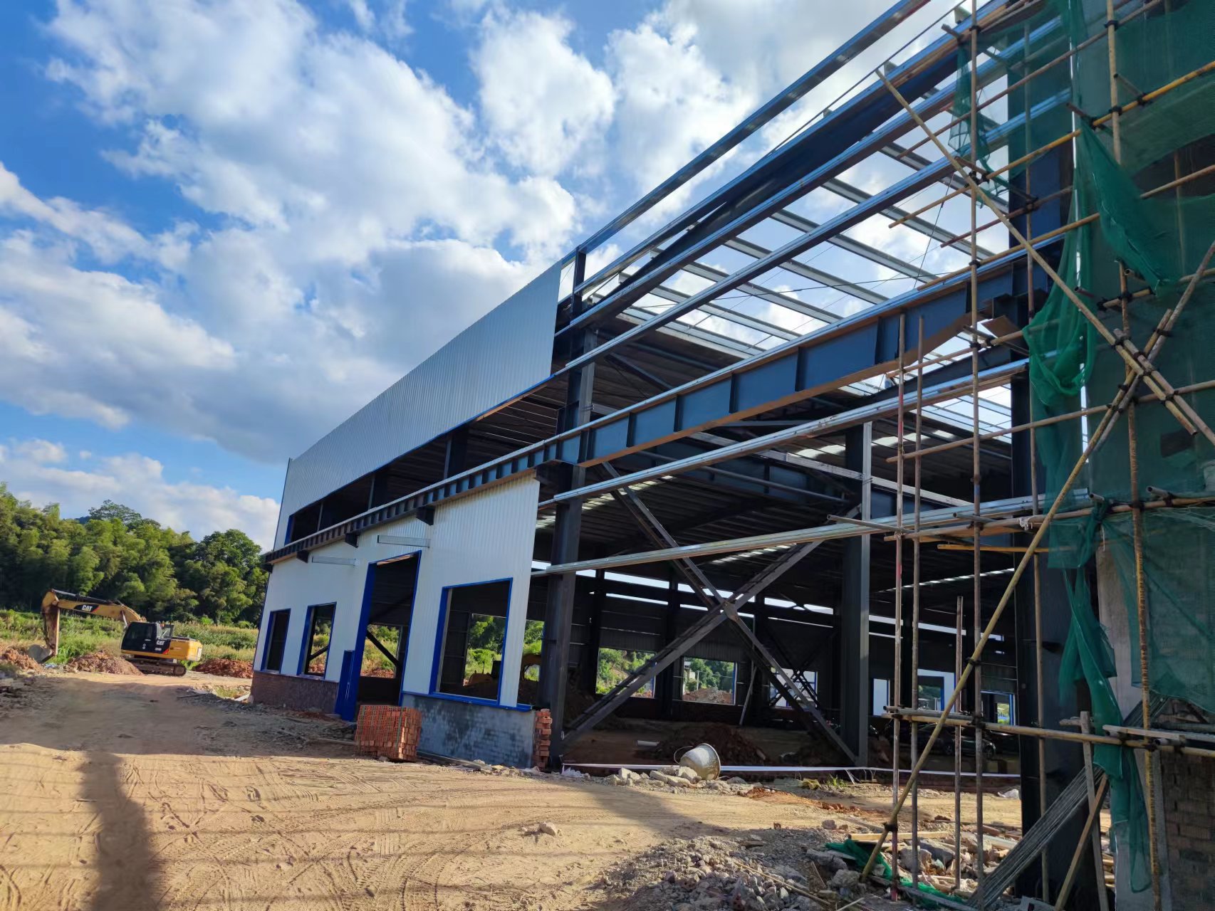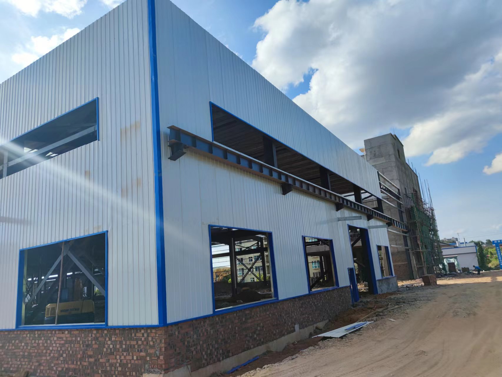 額定電壓6kV-35kV干法交聯(lián)生產(chǎn)線遷建鋼結(jié)構(gòu)項目位于懷化市中方縣高新區(qū),為門式鋼架結(jié)構(gòu),建筑面積約10000平方米,地上1層,建筑標高11.5米,檐口標高10.033米,帶電動行車,6月1日進場施工,截至目前已完成90%施工任務,工程進度符合預期計劃。