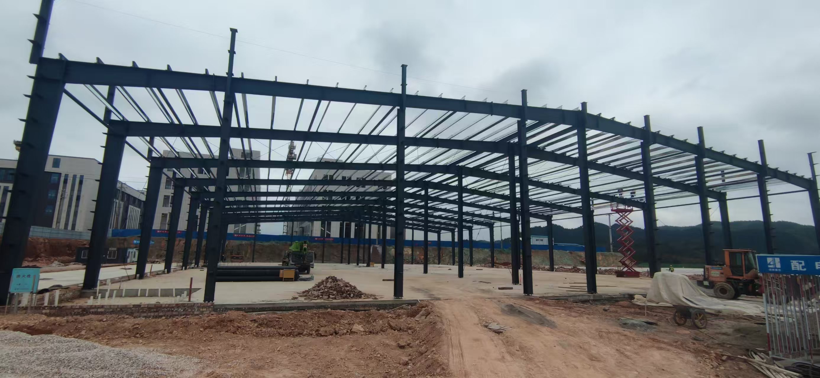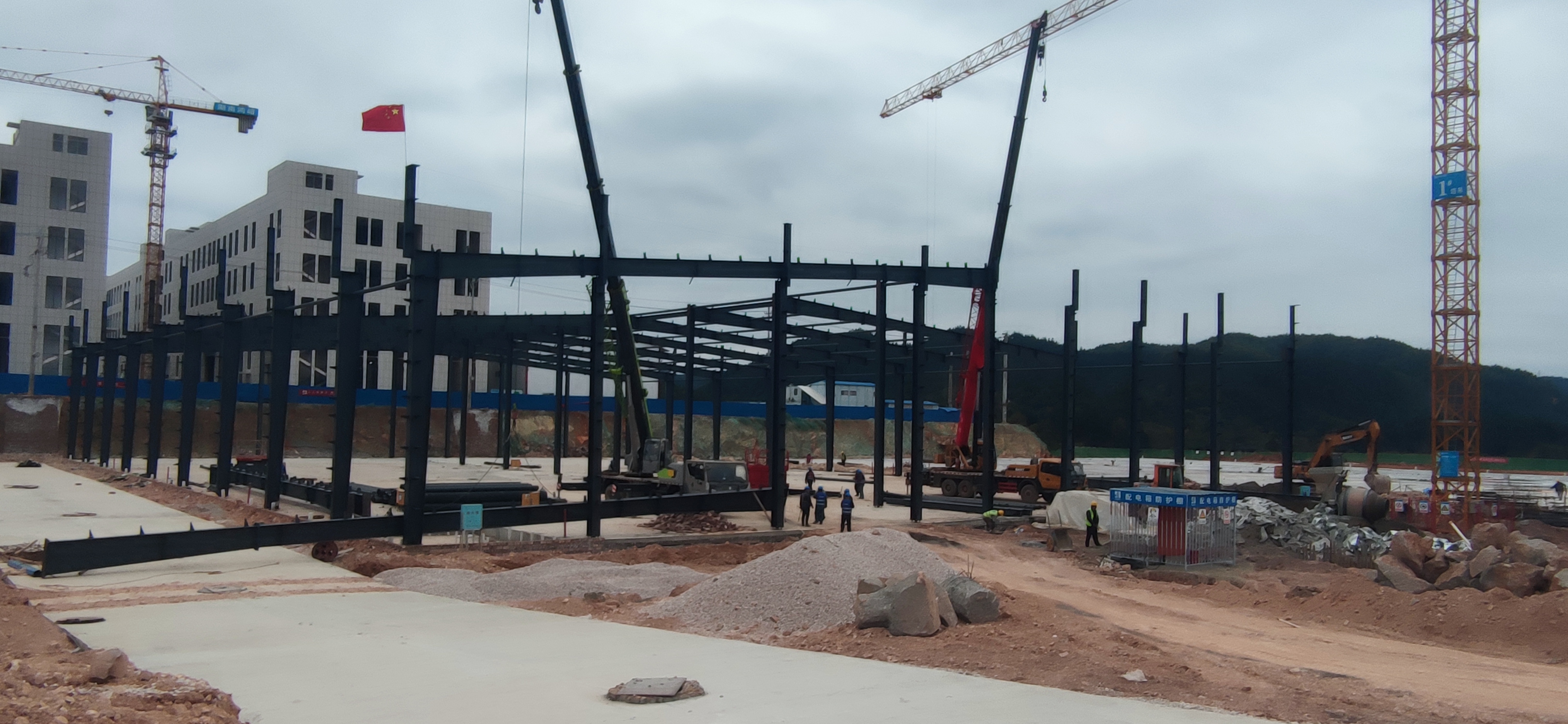 本項目位于湖南省懷化市會同縣,含單體廠房2棟,其中1#廠房建筑面積4560㎡,2#廠房建筑面積12150㎡,于11月7日進場吊裝。截止發(fā)文日,1#廠房主體鋼構(gòu)吊裝、屋面檁條安裝已完工,正在進行屋面板安裝工作;2#廠房鋼柱吊裝完成,正在進行鋼梁及次構(gòu)件安裝工程。