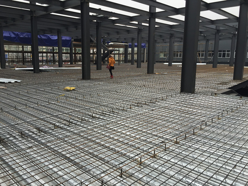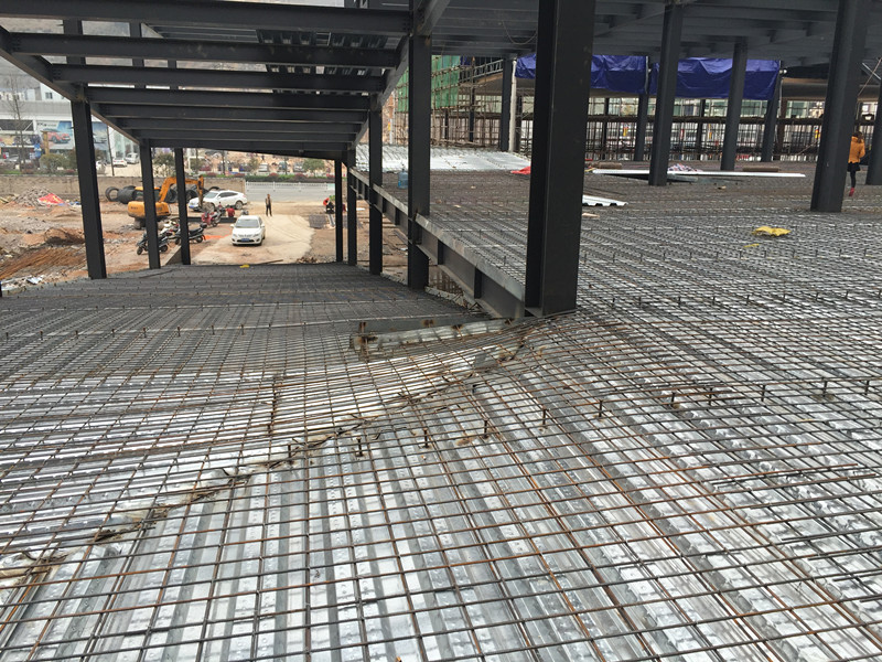 2016年3月17日,銅仁長安4S店一、二樓主體鋼梁鋼柱已安裝完成,正在進(jìn)行車道樓承板安裝施工,二樓樓面混凝土澆筑馬上開始。應(yīng)甲方要求,決定再在上面增加施工3層,一共是5層全鋼構(gòu)建筑,其中一至四樓樓面停車。
