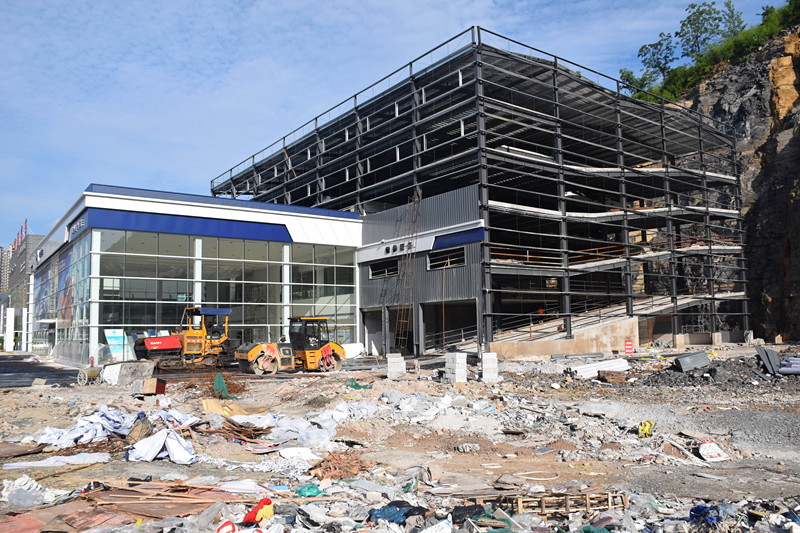 6月11日,公司領(lǐng)導(dǎo)來到銅仁長安4S店的施工現(xiàn)場進(jìn)行工作檢查,通過工人們的緊張施工,屋面已經(jīng)封頂,正在進(jìn)行墻面板的施工。由于甲方開始只準(zhǔn)備建兩層,后來又增加三層,總共五層全鋼構(gòu),所以影響了施工進(jìn)度。