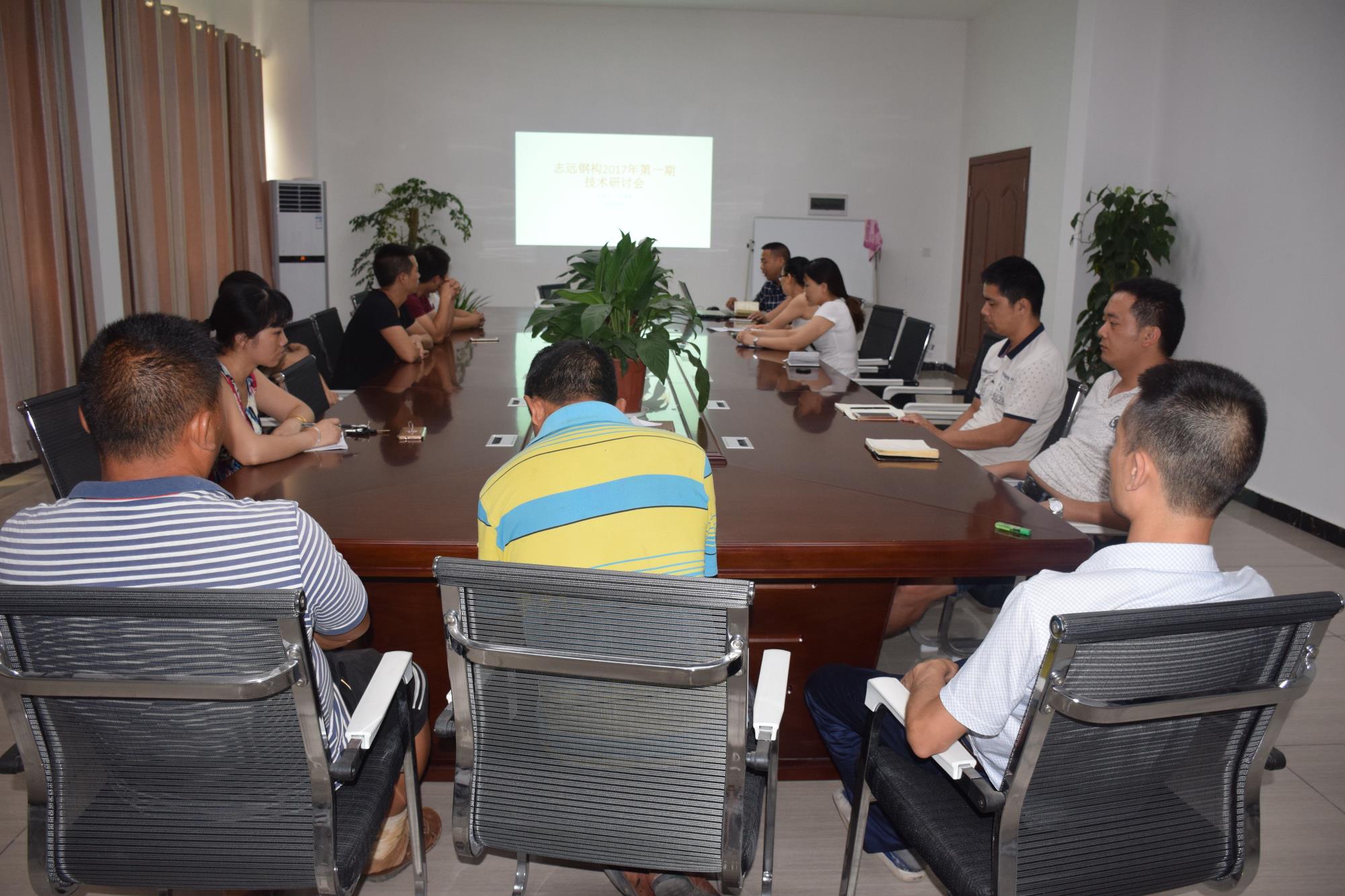 8月8日,志遠鋼構全體技術人員、部分車間工人代表、施工隊長在會議室舉辦了2017年第一期技術研討會,主題是“鋼結構工程系統(tǒng)性防水設計與處理”。會議一開始,大家都積極發(fā)言,認為鋼結構工程在結構上沒有半點問題,主要是屋面漏雨的處理。在充分發(fā)表意見的基礎上,會議形成了從設計、深化、加工到安裝的系統(tǒng)性防水處理方法,并以會議紀要的形式下發(fā)到各個部門,要求大家在進行下一個工程時執(zhí)行。