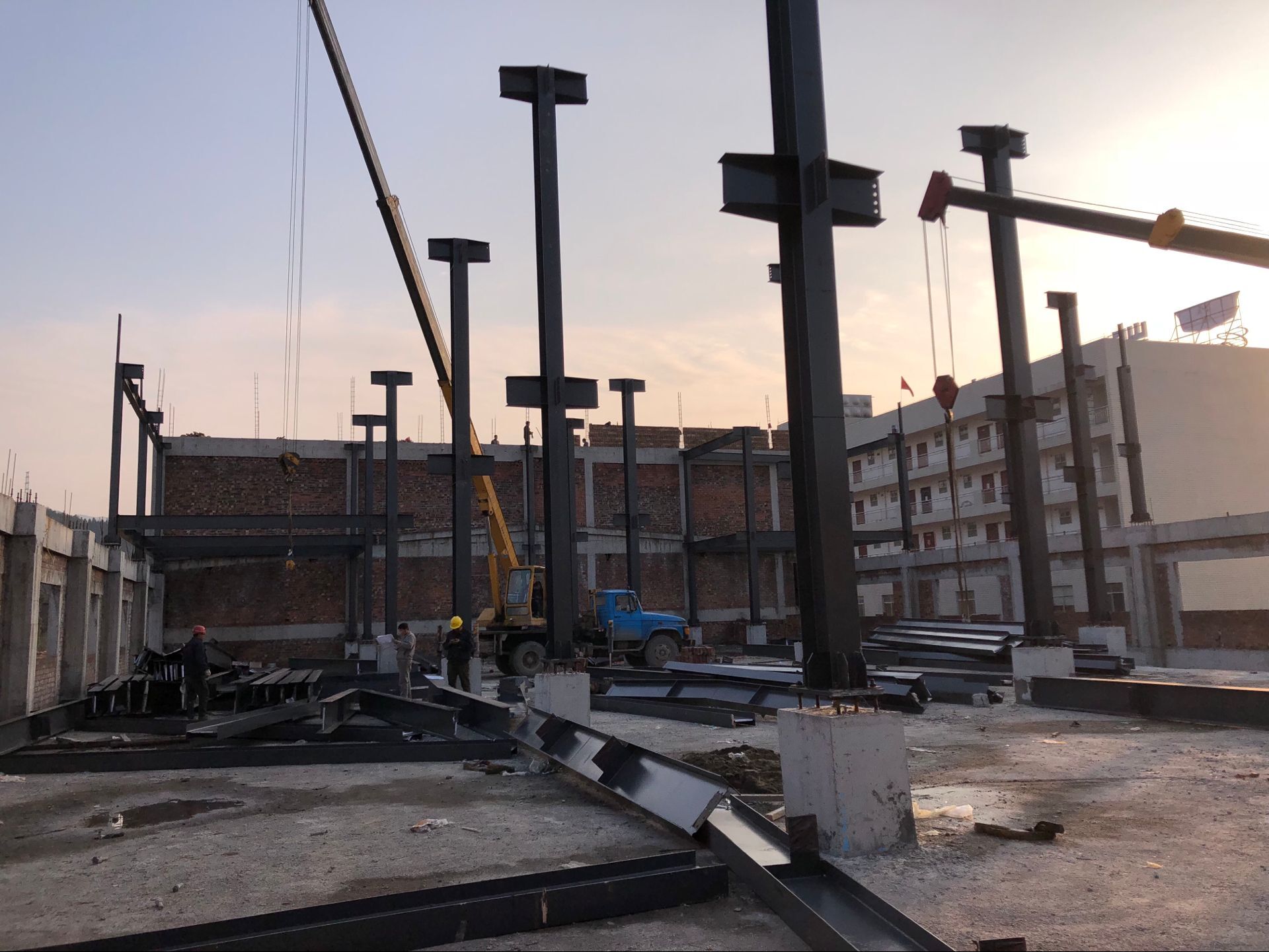 近日公司領(lǐng)導(dǎo)來到懷化汽車城德熙4S點的施工現(xiàn)場,短短幾天時間,已經(jīng)完成了主鋼梁鋼柱的施工。該項目屬于改擴建工程,原設(shè)計二層框架混泥土結(jié)構(gòu),現(xiàn)改為四層鋼結(jié)構(gòu),屋面停車,建有一條6米寬的車道,施工難度可想而知。